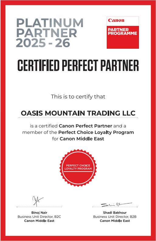 - Authorized Canon Dealer in the UAE: Trust our Platinum Partner status for 100% authentic Canon printers, toners, scanners, and accessories.